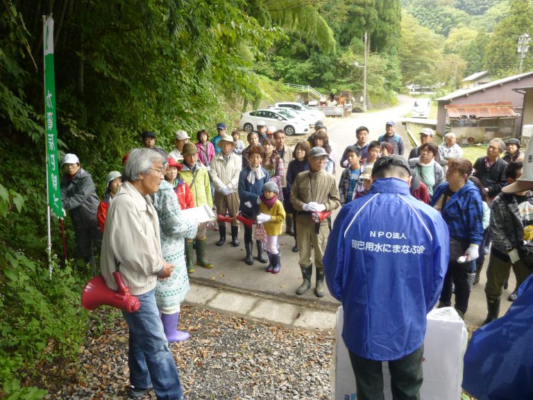 NPO法人「辰巳用水にまなぶ会」の方が辰巳用水について説明